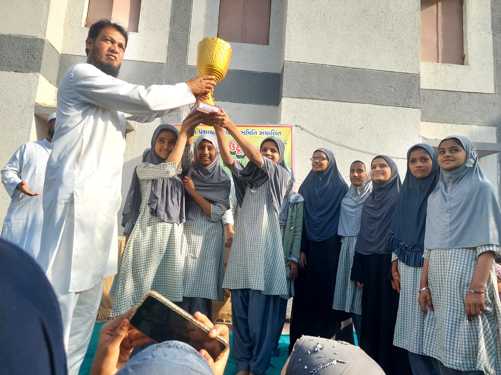 ગોધરા શહેરના પોલન બજાર ઉર્દૂ કન્યા શાળામાં પ્રજાસત્તાકદિન ની ભવ્ય ઉજવણી કરવામાં આવી જેમાં મુખ્ય મહેમાન તરીકે ડૉ.ફાએઝાબેન ઘાંચીભાઈ ઉપસ્થિત રહ્યા હતા પોતાના વક્તવ્યમાં તેમને કન્યા કેળવણી વિશે વાત કરી.આજના 26 જાન્યુઆરી ના આ પ્રોગ્રામમાં બાલવાટિકા થી લઈ ધોરણ 8 સુધીની વિધાર્થિનીઓએ ખૂબ જ ઉત્સાહથી ભાગ લીધો સાંસ્કૃતિક પ્રોગ્રામ કરવામાં આવ્યા જેમાં શાળાની વિધાર્થિનીઓએ અલગ અલગ પ્રોગ્રામ રજુ કર્યા.આજે તા.૨૭.૦૧.૨૦૨૪ ના રોજ વાર્ષિક રમતોત્સવ નો ઇનામ વિતરણ કરવામાં આવ્યું વિજેતા થયેલ વિધાર્થિનીઓને શાળાના શિક્ષકો દ્વારા ઇનામ આપી પ્રોત્સાહિત કરવામાં આવ્યા.બાળકોમાં એક અનેરો ઉત્સાહ જોવા મળ્યો.ધોરણ 6 થી 8 માં ખો ખો અને લંગડીમાં ધોરણ 7 ની ટીમ વિજેતા થતાં ટીમ ના કપ્તાન દાવ સના અને સમોલ આફિયા ને એસ.એમ.સી. અધ્યક્ષ શ્રી સુલેમાનભાઈ જભા સાહેબ દ્વારા ટ્રોફી આપવામાં આવી.શાળાના મુખ્યશિક્ષકે એક સફર પ્રોગ્રામ કરવા બદલ શાળા પરિવારનો આભાર વ્યકત કર્યો.