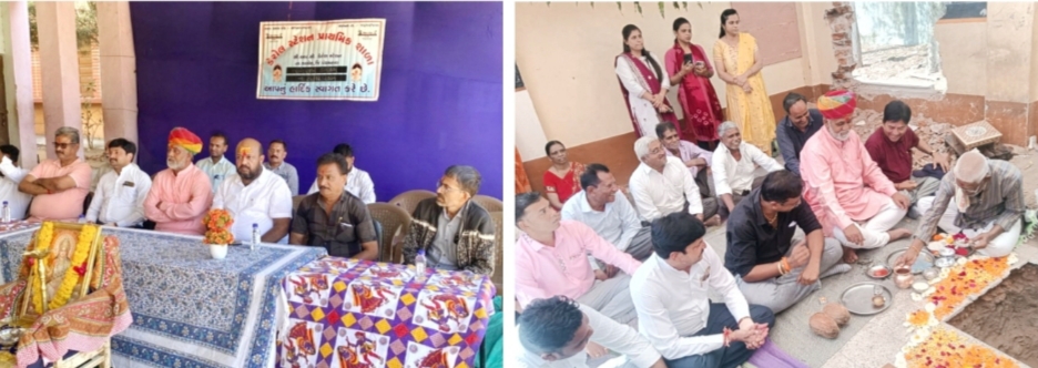 નવીન ઓરડાઓનુ ભૂમિ પૂજન વિધિવત મંત્રોચ્ચાર માટે અનુભવી બ્રાહ્મણ ના હસ્તે વિધિ કરી આવેલા મહાનુભાવો દ્વારા શ્રી ફળ વધેરી ભારત માતાની, સરસ્વતી માતાની પૂજા અર્ચના તેમજ આરતી પૂજા કરીને જય જય શ્રીરામ ના નારા લગાવ્યા હતા.