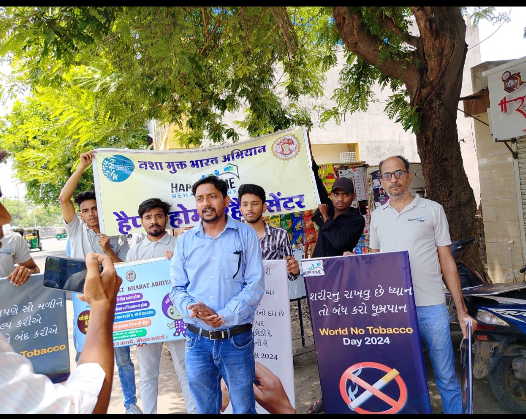 દાહોદમાં સૌ પ્રથમવાર સંસ્થા હેપ્પી હોમ રિહેબ દાહોદ દ્વારા 31 મે 2024ના વિશ્વ તમાકુ દિન નિમિત્તે વ્યસન મુક્તિનો સંદેશ આપ્યો હતો. સામાજિક ન્યાય અને વિકલાંગ કલ્યાણ વિભાગ દાહોદ અને હેપ્પી હોમ રિહેબિલિટેશન સેન્ટરના સૌજન્યથી તમાકુના સેવનથી થતી ખરાબ અસરો અંગે જનજાગૃતિ કાર્યક્રમનું આયોજન કરવામાં આવ્યું હતું. ટ્રાફિક પોલીસ દાહોદની મદદથી. જે અંતર્ગત સંસ્થાના પ્રતિનિધિઓએ રેલી દાહોદ શહેરના છાપ તાલાબ સિગ્નલ અને બસ ડેપોમાં દાહોદ શહેર ના સ્ટેશન રોડ, અને જાહેર રસ્તાઓ પર બેનરો, પોસ્ટરો, પેમ્ફલેટ અને સોગંદનામા દ્વારા તમાકુ અને માદક દ્રવ્યોના સેવનથી થતી હાનિકારક અસરો વિશે વટેમાર્ગુઓને જાગૃત કર્યા હતા. હેપ્પી હોમ રિહેબ ટીમના સભ્યોએ કુલદીપ સિસોદિયા, હાર્દિક પરમાર, વિજય, નરેશ રાજાણી, મેહલાબ મોહમ્મદ દ્વારા પોસ્ટર પ્રદર્શિત કરીને લોકોને જાગૃત કર્યા અને પેમ્ફલેટનું વિતરણ કર્યું. આ કાર્યક્રમ અંતર્ગત એક હજારથી વધુ લોકોને નશાથી બચવા માટે જાગૃત કરવામાં આવ્યા હતા. આ પ્રસંગે હેપ્પી હોમ-વ્યસન મુક્તિ કેન્દ્રના ડાયરેક્ટર શ્રી વિનોદ રોઝ લોકોને વ્યસન છોડવા અપીલ કરી હતી અને દાહોદ ટ્રાફિક પોલીસના સહકાર બદલ આભાર વ્યક્ત કર્યો હતો. હેપ્પી હોમ વ્યસન મુક્તિ કેન્દ્રની ટીમે પોસ્ટરો પ્રદર્શિત કર્યા હતા અને તમાકુના સેવનથી થતા કેન્સર જેવા જીવલેણ રોગો વિશે જાગૃતિ લાવવા તમાકુથી દૂર રહેવાના શપથ લીધા હતા.