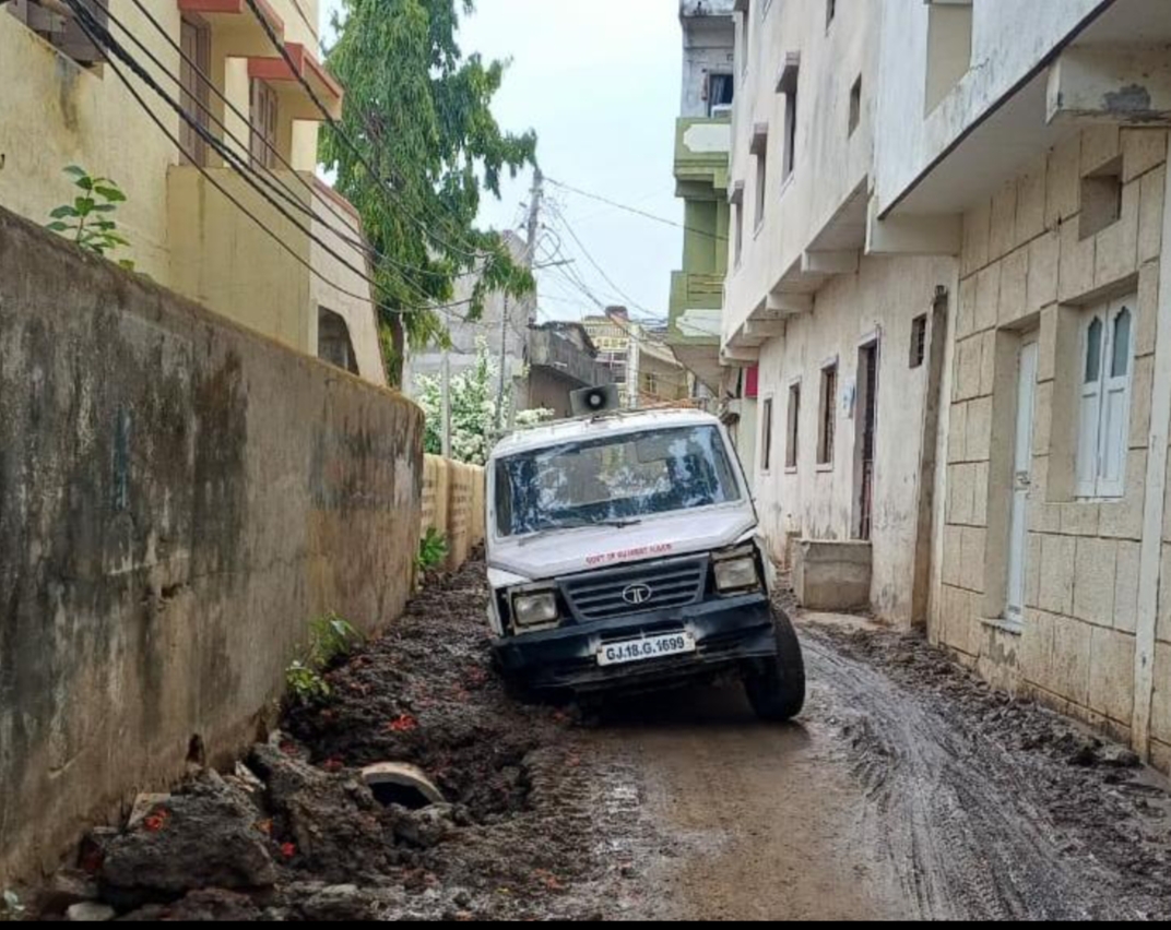 ઝાલોદ નગરપાલિકા પાસે પ્રી.મોન્સૂન અન્વયે પાણી નિકાલ માટે મોટા નાળા નાખવામાં આવી રહેલ છે. જો વધુ વરસાદ પડે તો નગરપાલિકાની આજુબાજુ રહેતા સોસાયટી ચાલકો માટેના મુખ્ય માર્ગો પર પાણી ભરાઈ જવાની ઘટના અગાઉ બનતી હતી તેથી આ સમસ્યાનું કાયમી નિરાકરણ લાવવા પાલિકા તંત્ર દ્વારા મોટા નાળા નાખવામાં આવી રહેલ છે જેથી આ વિસ્તારમાં પાણી ભરાવવાની સમસ્યા કાયમી દૂર કરી શકાય. આ પ્રી.મોન્સૂનની કામગીરી કરતા પાલિકા દ્વારા નાળા નાખી તેના પર માટી નાખી દેવામાં આવેલ છે છેલ્લા બે દિવસથી નગરમાં છૂટક છૂટક વરસાદ આવ જાવ કર્યા કરે છે. પાલિકા તંત્ર દ્વારા વરસાદ આવેલ હોઈ કામગીરી પર ધ્યાન ન આપ્યું હોય ત્યાં માટીને લઈ કાદવ કીચડ થઈ ગયેલ છે. પાલિકા તંત્ર દ્વારા કોઈ પણ કામ કરતા પહેલા જાણવાજોગ જે તે જગ્યાએ ખુલ્લી કામગીરી થતી હોય ત્યાં બેરીકેટ મૂકવા પડે છે પણ પાલિકા તંત્રની આ અણઆવડતનો શિકાર પ્રાથમિક આરોગ્ય તંત્ર ગરાડુની એમ્બ્યુલન્સ બની ગયેલ હતી આ કાદવ કીચડમા એમ્બ્યુલન્સનુ ટાયર ઉતરી જતાં તે ખાડામાં ફસાઈ ગયેલ હતી. ફસાઈ ગયેલ એમ્બ્યુલન્સ કાદવ કીચડ માથી કાઢતા તેનુ ટાયર માટીમાં ભરાવાથી ફાટી ગયેલ હોવાનું જાણવા મળેલ છે. પાલિકા તંત્ર તાત્કાલિક જાગૃત થઈ કામગીરી ચાલતા આ રસ્તા પર સાઈન બોર્ડ કે ચેતવણી આપતા બેરીકેટ મૂકે તેવી માંગ ઉઠવા પામી છે જેથી અન્ય કોઈ વાહન અહીંયા ફસાય નહીં તેમજ અન્ય કોઈ પણ જાતની દુર્ઘટના સર્જાય નહીં.