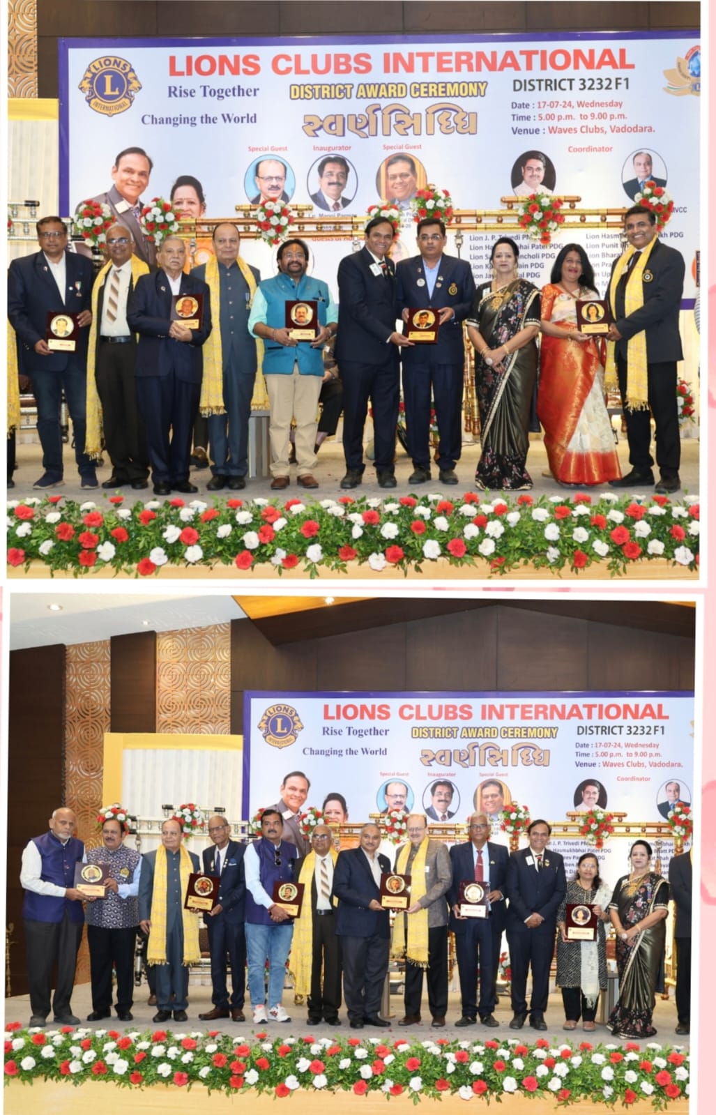 લાયન્સ ક્લબ ઇન્ટરનેશનલ ડિસ્ટ્રિક્ટ 3232 એફ વન વર્ષ 2023 -24 ડિસ્ટ્રીકટ એવોર્ડ સેરેમની “સ્વર્ણ સિદ્ધિ” તારીખ 17 /7/2024 ના રોજ વેવ્સ ક્લબ ભાઈલી- વાસના રોડ વડોદરા ખાતે ઈમિજિયેટ પાસ્ટ ડિસ્ટ્રિક્ટ ગવર્નર લાયન વિજય સિંહ ઉમટ ના અધ્યક્ષ સ્થાને યોજવામાં આવ્યો જેમાં રાઈસ ટુ ગેધર સૂત્રને સાર્થક કરતા વર્ષ દરમિયાન કરેલી સેવાકીય ,આરોગ્ય લક્ષી, ફૂડ ફોર હંગર, વૃક્ષારોપણ, દિવ્યાંગોને સાધન સહાય, આંખોની તપાસ, મેગા મેડિકલ કેમ્પ, બાળકોમાં સ્વેટર વિતરણ ,જેવી વિવિધ કરેલી પ્રવૃત્તિઓને બિરદાવા માટે લાયન્સ ક્લબ ઓફ દાહોદ સીટી ના ડિસ્ટ્રિક્ટ કેબિનેટ સેક્રેટરી લાયન યુસુફી કાપડિયા, ડિસ્ટ્રીકટ ચેરમેન લાયન કમલેશ લીમ્બાચીયા તેમજ પ્રમુખ લાયન તુલસી શાહને ઇન્ટરનેશનલ ડાયરેક્ટર લાયન પંકજ મહેતા ના હસ્તે એવોર્ડ આપી સન્માનિત કર્યા હતા. જેમાં કોર્ડીનેટર પીએમસીસી લા પરિમલ પટેલ અને પીએમવીસીસી લા શશીકાંત પરીખ અને દાહોદ ,હાલોલ ,નડિયાદ, ખંભાત ,આણંદ અને વડોદરા થી ખૂબ મોટી સંખ્યામાં લાયન મિત્રો ઉપસ્થિત રહ્યા હતા લાયન્સ ક્લબ ઓફ દાહોદ સિટીના તમામ સભ્યોએ અભિનંદન પાઠવ્યા હતા.