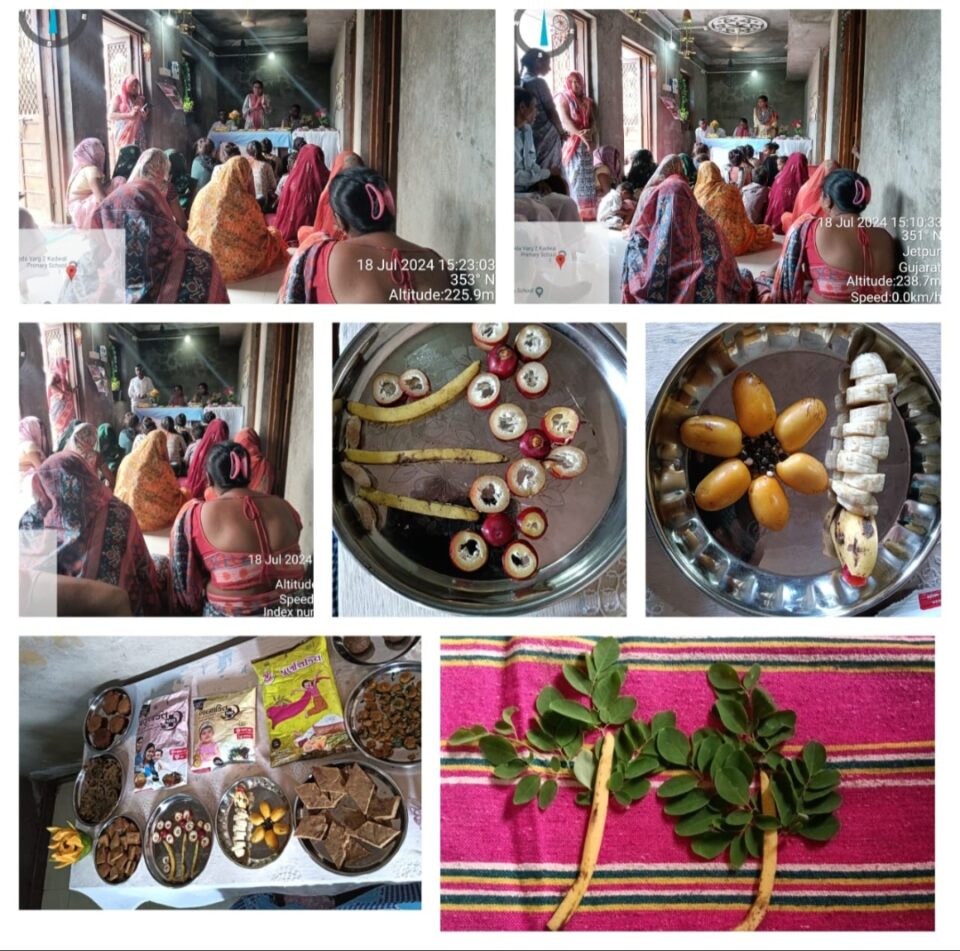 તારીખ:-૧૮/૦૭/૨૦૨૪ના રોજ ઝાલોદ તાલુકાના કદવાલ સેજાના કદવાલ ખેડા ૪ , નીમે વરોડ , બાજરવાડા ,આંગણવાડી કેન્દ્ર ખાતે આઈ.ઈ.સી. કાર્યક્રમમાં ગામના સરપંચ , સિડીપીઓ અને શાળાના આચાર્ય કાર્યક્રમમાં હાજર રહ્યા. જેમાં સીડીપીઓ દ્વારા ગામના પોષણ સુધા યોજનાના સગર્ભા માતાઓ,ધાત્રી માતાઓ, કિશોરીઓ,ભાઈઓ તથા બહેનો તેમજ સાસુ અને પતિ ને THR ના લાભ તથા પોષણ સુધા યોજનાના લાભ તેમજ Icds ની અન્ય યોજના ઓ અંગે જાણકારી આપવા માં આવી. અને તેઓ THR ઘરે જાતે બનાવીને ખાય તેમજ thr માંથી બનતી વાનગી,અને પોષણ સુધામાં આપવામાં આવતું મેનુ વિશે અને આહારમાં તેનો ઉપયોગ કરવાથી થતા ફાયદા અને આહારમાં સરગવાના પાનનો ઉપયોગ અને તેનું મહત્વ,બાળકને જન્મ આપ્યા પછી માતા સંપૂર્ણ આહાર લે તે અંગે સમજ આપવામાં આવી.સરપંચ દ્વારા પણ પોષ્ટિક આહાર નિયમિતપણે લેવા માટેની સલાહ સાથે વ્યસનથી દૂર રહેવા માટે પણ કહેવામાં આવ્યું. શાળા આચાર્ય દ્વારા પણ માતાની સ્વાસ્થ્યની અસર બાળક પર પડે છે તેથી બાળકની માતા સ્વસ્થ અને તંદુરસ્ત રહે તે માટે ખોરાક મહત્વનો ભાગ ભજવે છે તેમ સમજાવવામાં આવ્યું.