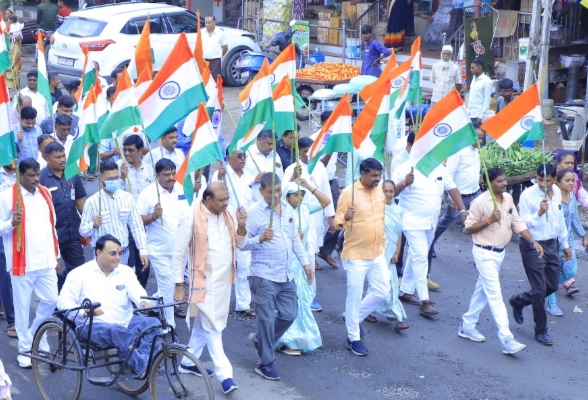 દાહોદ:- વડાપ્રધાન શ્રી નરેન્દ્રભાઈ મોદીની પ્રેરણા અને માર્ગદર્શનમાં સમગ્ર દેશમાં તારીખ ૮ મી થી ૧૫ મી ઓગસ્ટ દરમિયાન “હર ઘર તિરંગા અભિયાન” અને “તિરંગા યાત્રા” યોજાઈ રહી છે. જે અંતર્ગત ગુજરાતમાં પણ મુખ્યમંત્રી શ્રી ભૂપેન્દ્રભાઇ પટેલના માર્ગદર્શનમાં આ અભિયાન હેઠળ વિવિધ કાર્યક્રમોના ભવ્ય આયોજનો કરવામાં આવ્યા છે. દાહોદ જિલ્લામાં પણ હર ઘર તિરંગા અભિયાનને લઈને ભારે ઉત્સાહ જોવા મળી રહ્યો છે. જેમાં અબાલવૃદ્ધ સર્વે નાગરિકો ઉત્સાહભેર સહભાગી બની રહ્યા છે અને જિલ્લા વહિવટી તંત્ર દ્વારા તમામ નાગરિકોને રાષ્ટ્રધ્વજનું વિતરણ કરવામાં આવી રહ્યું છે.લીમખેડા ખાતે તિરંગા યાત્રાનું ભવ્ય આયોજન કરવામાં આવ્યું હતું. જેમાં શાળાના બાળકો અને ગ્રામજનો બહોળી સંખ્યામાં સામેલ બન્યા હતા. નાગરિકોએ હાથમાં તિરંગો ઝંડો લહેરાવીને દેશભક્તિ અને એક અખંડ ભારતનો પ્રેરણાદાયી સંદેશો આપ્યો હતો.નોંધનીય છે કે,જિલ્લાની તમામ શાળાઓમાં હર ઘર તિરંગા અભિયાન હેઠળ દેશપ્રેમ વ્યક્ત કરતી અનેકવિધ પ્રવૃતિઓ થઈ રહી છે, જેને પગલે શહેર-જિલ્લાના બાળકો, વિદ્યાર્થીઓ અને આમ નાગરિકો દેશભક્તિના રંગે રંગાયા છે. શાળાઓની પ્રેરણાથી ભૂલકાઓ બાળપણથી જ દેશભક્તિના પાઠ શીખી રહ્યા છે.આ પ્રસંગે ધારાસભ્ય શ્રી શૈલેષભાઈ ભાભોર પ્રાંત અધિકારી શ્રી ભવ્ય નિનામાં,સહિત તાલુકાના અધિકારી શ્રીઓ પદાધિકારી શ્રીઓ તેમજ બાળકો સહિત મોટી સંખ્યામાં ગ્રામજનો ઉપસ્થિત રહ્યા હતા.
