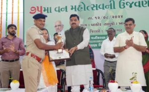 મહીસાગર જિલ્લા કક્ષાના ૭૫માં વન મહોત્સવની ઉજવણી શિક્ષણ મંત્રીશ્રી ડો. કુબેરભાઈ ડિંડોરની પ્રેરક ઉપસ્થિતમાં યોજાઈ