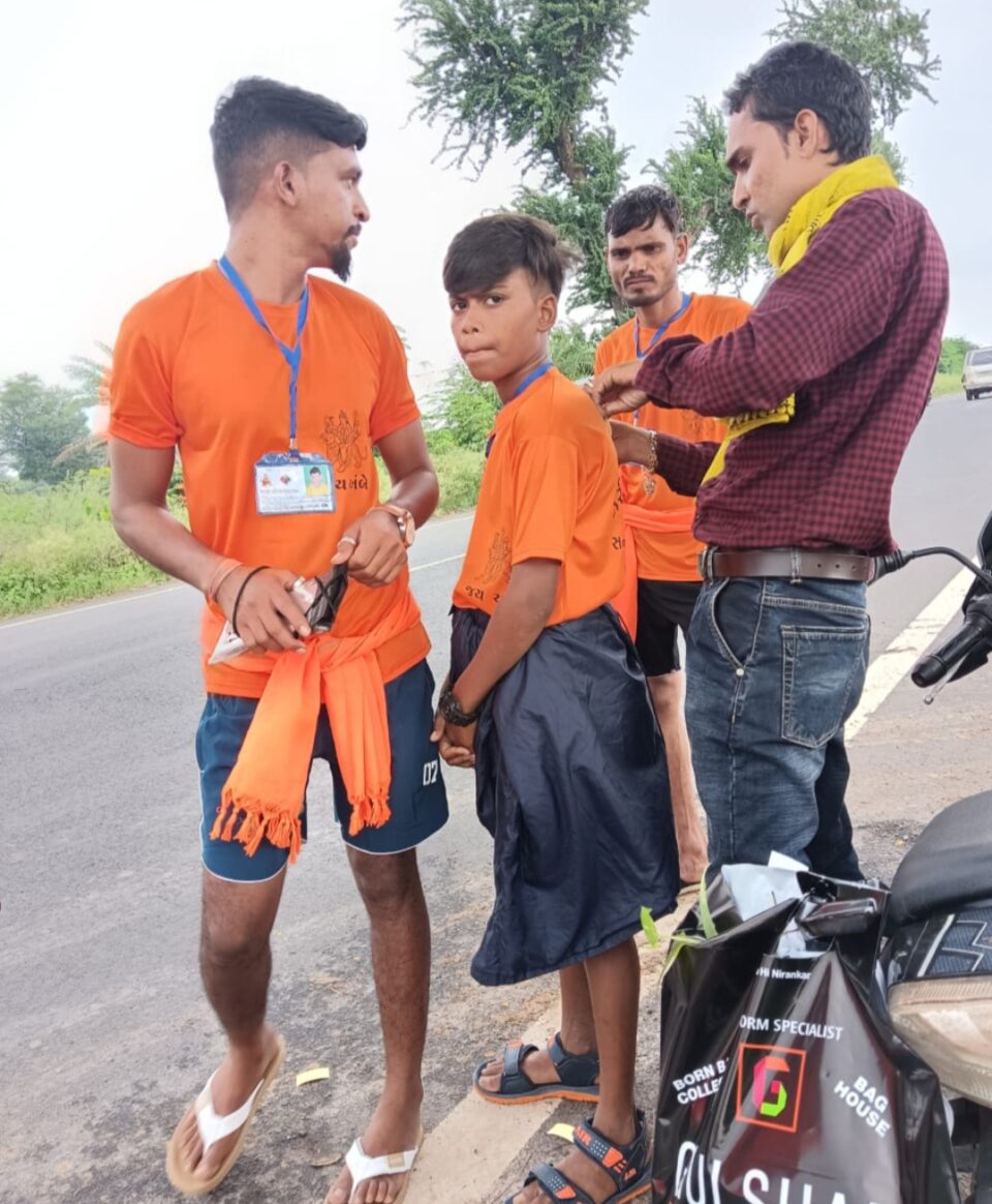 દાહોદ જિલ્લામાં દાહોદ અને ગરબાડાના અનેક પદયાત્રીઓ પગપાળા દાહોદ થી અંબાજી માતાજીના દર્શન અર્થે હર વર્ષે જેમ આ વર્ષે પણ ખુબજ મોટી સંખ્યામાં દાહોદ ,ગરબાડા ગામોના શ્રદ્ધાળુઓ જતા હોય છે, મોટી ખરજના સામાજિક કાર્યકર્તા નયન ખપેડ દ્વારા અંબાજી પદયાત્રા જતા શ્રદ્ધાઓની રોડ સેફટી અંગે ની માહિતી આપવામાં આવી હતી , અને તેમની ટીશર્ટ ઉપર રેડિયમ સ્ટીકર લગાવી લાવવામાં આવ્યા હતા, પગપાળા જતા શ્રદ્ધાળુઓ પદયાત્રીઓ જે રોડની સાઇટ પર થઈ ચાલતા જતા હોય છે, કોઈ કારણસર દાહોદ થી પગપાળા જતા શ્રદ્ધાળુઓ ને એકસીડન્ટ કે કોઈ જાનહાનિ ના થાય તે અંગેના ધ્યાનમાં રાખી તેમની ટીશર્ટો પર, ઝંડા ની લાકડીઓ પર અને છત્રીઓ પર રેડિયમ સ્ટીકર લગાવી આપ્યા હતા દાહોદ તાલુકાના મોટીખરજ ગામના નયન ખપેડ સામાજિક કાર્યકર્તા દ્વારા.