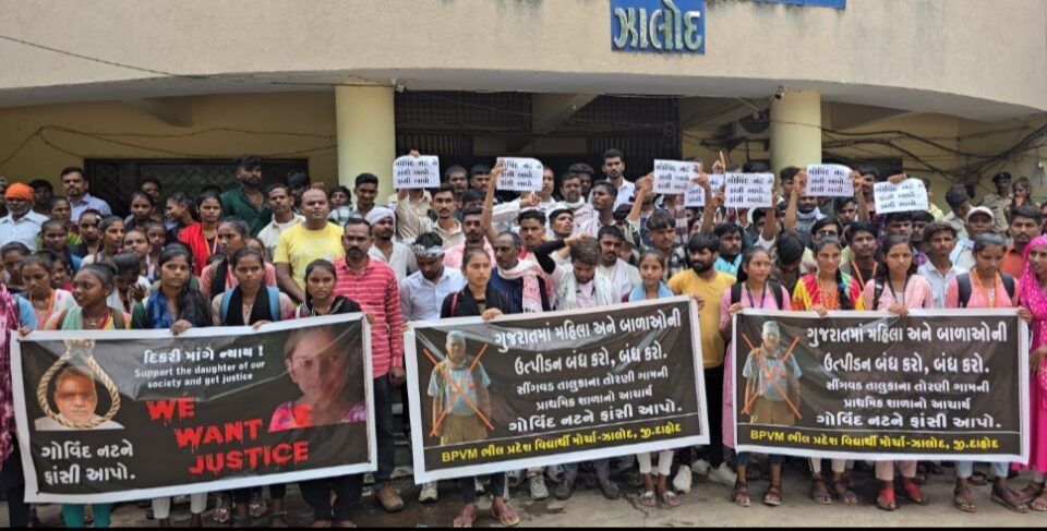 ભીલ પ્રદેશ યુવા મોરચા દ્વારા તાત્કાલિક પગલાં લઈ આરોપીનેફાંસી મળે તેની માંગ કરાઈઝાલોદ ભીલ પ્રદેશ યુવા મોરચા સાથે જોડાયેલ સહુ લોકો આજ રોજ બપોરે 12:30 વાગે ઝાલા વસૈયા ચોક પર મોટા પ્રમાણમાં બાળાઓ તેમજ વિધાર્થીઓ ભેગા થઈ મામલતદાર કચેરી સુધી હાથોમાં બેનર તેમજ આરોપી ગોવિંદ નટને ફાંસી મળે તેવા સૂત્રોચ્ચાર સાથે રેલી કાઢવામાં આવી હતી. આ રેલીમાં તોરણી ગામની પ્રાથમિક શાળામાં અભ્યાસ કરતી 6 વર્ષની બાળા સાથે તેના જ સ્કૂલના પ્રિન્સિપાલ ગોવિંદ નટ દ્વારા શ્રુષ્ટી વિરુદ્ધનુ કૃત્ય કરી બાળકીની હત્યા કરી હતી. જે શિક્ષકનો રોલ બાળકોને જીવવાનો અને તેના જીવનના ઘડતરમા અમૂલ્ય ફાળો હોય તે જ સ્કૂલોમાં બાળકો સુરક્ષિત ન હોય તો બાળકોને ક્યાં ભણવા મોકલવા તેમજ બાળકોનું ઘડતર કેવી રીતે કરવું તેવો વેધક સવાલ દરેક બાળકીના પિતાને આજે થઈ રહેલ છે. શિક્ષણ જગતને શરમાવે તેવું કૃત્ય જો શિક્ષક કરે તો બાળકીઓ ના પિતા કોના પર ભરોસો મૂકે…ભીલ પ્રદેશ યુવા મોરચા સાથે મોટા પ્રમાણમાં અભ્યાસ કરતી બાળાઓ તેમજ આગેવાનો ભેગા થઈ મામલતદારને આવેદનપત્ર આપતા આ સમગ્ર ઘટના કલંકિત છે અને આ ઘટનાનો દરેક સમાજના લોકો આજે નિંદા કરી રહેલ છે. ભારતીય સમાજમાં આવી નિંદનીય અને કલંક રૂપ ગણાય તેવી ઘટના જે બાળકી સાથે થયેલ છે તેના ભાગ રૂપે આરોપી નરાધમને ફાસ્ટ ટ્રેક કોર્ટમા સમય મર્યાદામા ઝડપી કેસ ચલાવી આરોપીને ફાંસી આપવામાં આવે તેમજ આરોપીની મિલકત ટાંચમા લઈ ન્યાયનો ઐતિહાસિક દાખલારૂપ ઉદાહરણ પૂરું પાડવામાં આવે તેવી માંગ કરવામાં આવી હતી. તેમજ આરોપીને 10 થી 15 દિવસમાં જો સજા નહીં આપવામાં આવે તો ગાંધી ચિંધ્યા માર્ગે ઉગ્ર આંદોલન કરવાની ચીમકી ભીલ પ્રદેશ યુવા આદિવાસી પરિવાર દ્વારા કરવામાં આવી હતી.