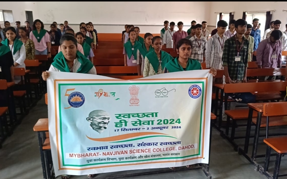 દાહોદ : દાહોદમા શ્રી ગોવિંદ ગુરુ યુનિવર્સિટી, વિંઝોલ, ગોધરા સંલગ્ન દાહોદ અનાજ મહાજન સાર્વજનિક એજ્યુકેશન સોસાયટી સંચાલિત નવજીવન સાયન્સ કોલજ, દાહોદના એન. એસ.એસ. એકમ દ્વારા ૨૪ સપ્ટેમ્બર એન.એસ.એસ. દિવસની ઉજવણીના ભાગરૂપે સ્વચ્છતા હી સેવા – ૨૦૨૪ અભિયાન અંતર્ગત ‘સ્વભાવ સ્વછતા – સંસ્કાર સ્વછતા’ હેઠળ કાર્યક્રમ યોજવામાં આવ્યો હતો.આ કાર્યક્રમમાં વિદ્યાર્થીઓ દ્વારા હું પહેલા પોતાનાથી, મારા પરિવારથી, મારા મહોલ્લાથી, મારા કાર્યસ્થળથી સ્વચ્છતાની શરૂઆત કરીશ અને પોતે સ્વચ્છતા માટે દર વર્ષે ૧૦૦કલાક એટલે કે, દર અઠવાડિયે ૨ કલાક શ્રમદાન કરીને સ્વચ્છતા કરીશના સંકલ્પ લેવામા આવ્યા હતા.