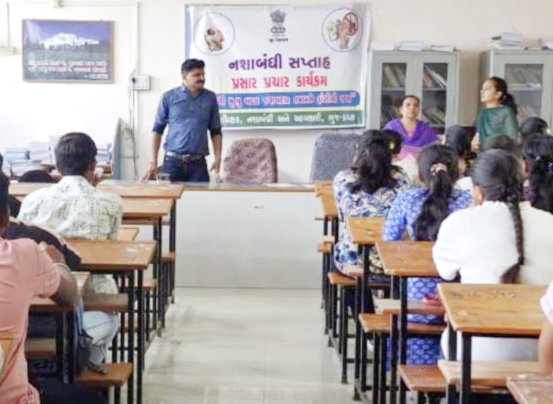 નશાબંધી અને આબકારી વિભાગ દ્વારા નશાબંધી સપ્તાહ 2024 ની ઉજવણીના ભાગ રૂપે સમાજમાં વ્યસન મુક્તિ અંગે જન જાગૃતિ કેળવવા માટે વિવિધ કાર્યક્રમો યોજવામાં આવી રહ્યા છે.જેના ભાગ રૂપે માંડવી ખાતે શ્રી શેઠ એસ.વી.આર્ટસ ઍન્ડ કોમર્સ કોલેજ ખાતે વિવિધ સ્પર્ધાઓ અને કાર્યક્રમ યોજવામાં આવ્યો હતો ત્યારબાદ નગરપાલિકા માંડવીના સહયોગથી શહેરના નાગરિકોમાં નશા વિરોધી સતર્કતા કેળવવા માટે વ્યસન મુક્તિ ટેબ્લો ફેરવવામાં આવ્યો હતો