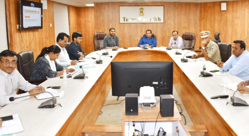 આજરોજ જિલ્લા સેવા સદન કચ્છ ખાતે જિલ્લા કલેક્ટર અમિત અરોરાના અધ્યક્ષસ્થાને ‘વિકાસ સપ્તાહ’ના સુચારું આયોજનને લઈને શીર્ષ અધિકારીઓ સાથે બેઠક યોજાઇ હતી. જિલ્લા કલેક્ટર અમિત અરોરાએ શાળાઓમાં ક્વિઝનું આયોજન, યુથ આઈકોન ટૉક-શૉ યોજવા, સ્મૃતિવન મેમોરિયલ અને શ્યામજી કૃષ્ણવર્મા સ્મારક ખાતે સુશોભન અને રોશની, નગરપાલિકા દ્વારા વોલ પેઇન્ટિંગ, શાળા કોલેજમાં વકતૃત્વ સ્પર્ધા તેમજ નિબંધ સ્પર્ધા, સરકારી યોજનાકીય સાફલ્યગાથાઓ તેમજ વિકાસ પદયાત્રા વગેરે કાર્યક્રમો સુચારું રીતે યોજાય તે માટે જરૂરી માર્ગદર્શન પુરું પાડ્યું હતું.
