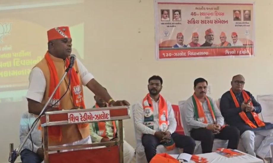 ગુજરાત પ્રદેશ માંથી રાજેન્દ્રસિંહ ચાવડા વિશેષ ઉપસ્થિત રહ્યા હતા ઝાલોદ એ.પી.એમ.સી ખાતે ભાજપના 46મા સ્થાપના દિનની ઉજવણી પ્રસંગે સક્રિય સદસ્ય સંમેલન ધારાસભ્ય મહેશ ભૂરીયાની ઉપસ્થિતિમાં યોજાયું હતું. આજના વિશેષ પ્રોગ્રામ પ્રસંગે ગુજરાત ભાજપના પ્રતિનિધિ તરીકે રાજેન્દ્રસિંહ ચાવડા વિશેષ ઉપસ્થિત રહેલ હતા. સહુ પ્રથમ દિપ પ્રાગટ્ય તેમજ વંદે માતરમ્ ગાન ગાઈ પ્રોગ્રામની શરૂઆત કરવામાં આવી હતી.