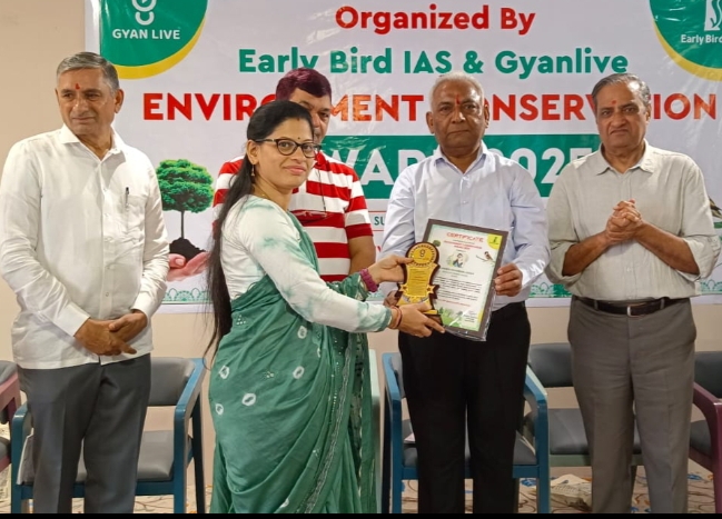 ગુજરાત માધ્યમિક અને ઉચ્ચતર માધ્યમિક શિક્ષણ બોર્ડના મદદનીશ સચિવ શ્રી પુલકિતભાઈ જોશી દ્વારા નીલમબેન જાદવને દાહોદ જિલ્લાનાં કો -ઓર્ડિનેટર તરીકે એવોર્ડથી સન્માનિત કરવામાં આવ્યા.તારીખ 25/05/2025ના રોજ ગાંધીનગર ખાતે ગુજરાત માધ્યમિક અને ઉચ્ચતર માધ્યમિક શિક્ષણ બોર્ડના મદદનીશ સચિવ શ્રી પુલકિતભાઈ જોશી અને તેમના પિતા શ્રી ગજેન્દ્રભાઈ જોશીના અધ્યક્ષ સ્થાને Environment Conservation Award- 2025 કાર્યક્રમ યોજવામાં આવ્યો, જેમાં સમગ્ર ગુજરાત રાજ્યમાંથી પર્યાવરણ સંરક્ષક તરીકે ઉત્કૃષ્ટ કામગીરી કરનાર શિક્ષકોને જિલ્લા સંયોજક બનાવવામાં આવ્યા હતાં. આ કાર્યક્રમમાં દાહોદના શિક્ષિકા બહેન શ્રીમતી નીલમબેન જાદવને પણ દાહોદ જિલ્લાનાં કો -ઓર્ડિનેટર તરીકે એવોર્ડથી સન્માનિત કરવામાં આવ્યા.