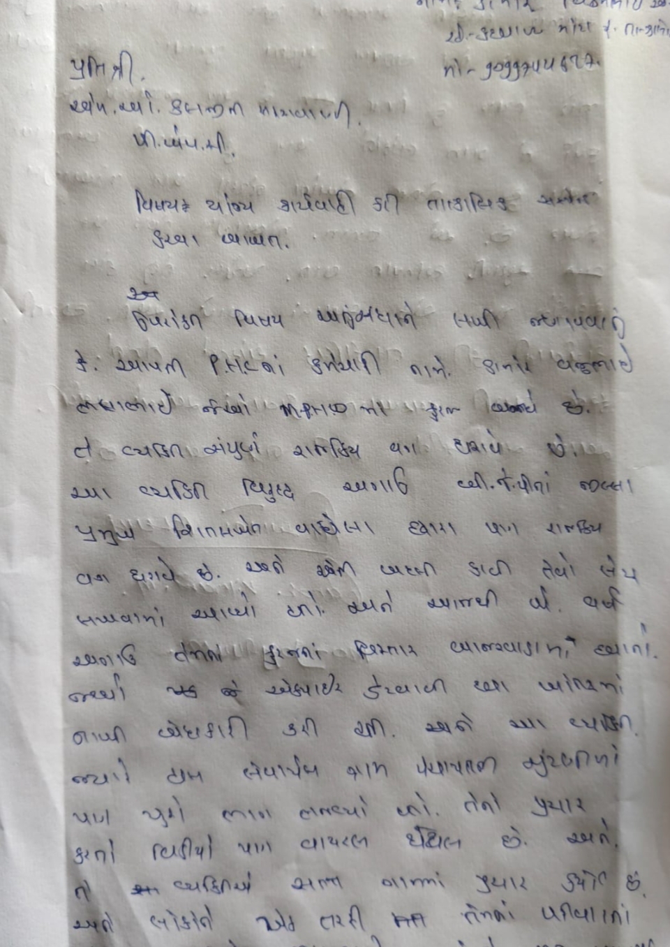 ઝાલોદ તાલુકાના સામાજિક આગેવાન વિક્રમ ડામોરે MPHW વજુભાઈ ડામોર વિરુદ્ધ PHC કલજીની સરસવાણીના MO ને લેખિત ફરિયાદ આપતાં જણાવેલ છે કે સરકારી કર્મચારી વજુભાઈ ડામોર સરપંચની ચૂંટણી દરમિયાન પ્રચાર કરતા હતા તેમજ મતદાનના દિવસે પણ પ્રચાર કરતાં હોવાનો વીડિયો હોવાની વાત કરી રહેલ છે અને આવો એક વિડિયો પણ વાયરલ થયેલ છે જેમાં વિક્રમભાઈ દ્વારા આક્ષેપ કરાઈ રહેલ છે કે તેઓ ચૂંટણી પ્રચારમાં આવેલ છે. વિક્રમ ડામોરના કહેવા મુજબ વજુભાઈ રાજકીય વગ ધરાવનાર વ્યક્તિ છે.