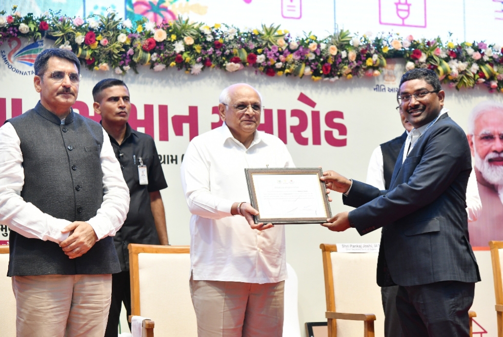 મુખ્યમંત્રીશ્રી ભુપેન્દ્ર પટેલના વરદ હસ્તે દાહોદ જિલ્લા કલેક્ટરશ્રી યોગેશ નિરગુડેને મહાત્મા મંદિર ખાતે એસ્પીરેશલ બ્લોકમાં ઉત્કૃષ્ટ કામગીરી કરવા બદલ ગોલ્ડ મેડલ તેમજ સર્ટીફીકેટ આપી સન્માન કરવામાં આવ્યું.ભારત સરકારના નીતિ આયોગ દ્વારા વિવિધ કલ્યાણકારી યોજનાઓના અસરકારક અમલ અને આદિવાસી વિસ્તારના જન-સામાન્ય સુધી યોજનાઓ પહોંચે એ માટે “સંપૂર્ણતા અભિયાન” શરુ કરવામાં આવ્યું હતું. જે અંતર્ગત ગાંધીનગર મહાત્મા મંદિર ખાતે ગુજરાત રાજ્યના મુખ્યમંત્રીશ્રી ભુપેન્દ્ર પટેલની અધ્યક્ષતા હેઠળ “સંપૂર્ણતા અભિયાન સમારોહ” યોજવામાં આવ્યો હતો.આ સમારોહ દરમ્યાન એસ્પીરેશલ ડીસ્ટ્રીકટ હેઠળ આવતા જિલ્લાઓમાં કરવામાં આવેલ નોંધનીય કામગીરી માટે જિલ્લા કલેક્ટરશ્રીઓને મુખ્યમંત્રીશ્રી ભુપેન્દ્ર પટેલના વરદ હસ્તે મેડલ તેમજ સર્ટીફીકેટ આપીને તેઓનું સન્માન કરવામાં આવ્યું હતું. વર્તમાન તેમજ તત્કાલીન કલેકટરશ્રીઓનું પણ આ તકે સન્માન કરવામાં આવ્યું હતું.એસ્પિરેશનલ ડિસ્ટ્રિક્ટ અને એસ્પિરેશનલ બ્લોક હેઠળ રાજ્ય અને રાષ્ટ્રીય સ્તરે જુલાઈ-૨૦૨૪ થી સપ્ટેમ્બર-૨૦૨૪ સુધીના ૩ માસ દરમિયાન આયોજિત “સંપૂર્ણતા અભિયાન”માં દાહોદ જિલ્લામાં આશાજનક કામગીરી કરવામાં આવી હતી. આ અભિયાન અંતર્ગત શ્રેષ્ઠ કામગીરી કરવા બદલ ગાંધીનગર સ્થિત મહાત્મા મંદિર ખાતે ગુજરાત રાજ્યના મુખ્યમંત્રીશ્રી ભૂપેન્દ્રભાઈ પટેલની અધ્યક્ષતામાં આયોજિત રાજ્ય કક્ષાના સન્માન સમારોહમાં દાહોદ જિલ્લા કલેક્ટરશ્રી યોગેશ નિરગુડેને ગોલ્ડ મેડલ અને સર્ટીફીકેટ વડે સન્માનિત કરવામાં આવ્યા હતા.સંપૂર્ણતા અભિયાન અંતર્ગત દેશના મહત્વાકાંક્ષી જિલ્લાઓમાં આરોગ્ય, પોષણ, શિક્ષણ, કૃષિ, ગૃહ અને રોજગાર જેવા ક્ષેત્રોમાં ચોક્કસ સુચકાંકો હેઠળ છેવાડાના નાગરિકોને આવરી લેવાના હેતુથી યોજવામાં આવ્યું હતું. આદિવાસી વિસ્તાર એવા દાહોદ જિલ્લાની આ ઉપલબ્ધિએ આકાંક્ષી જિલ્લા તરીકે રાજ્ય તથા રાષ્ટ્રીય સ્તરે દાહોદને નોંધનીય ગૌરવ અપાવ્યું છે.