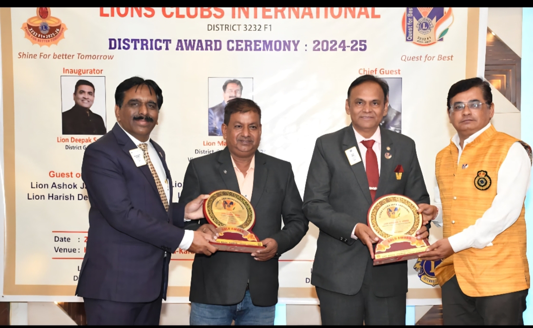 લાયન્સ ક્લબ ઇન્ટરનેશનલ ડિસ્ટ્રિક્ટ 3232 F1 એવોર્ડ સેરેમની 2024-25 કરમસદ તારીખ 28/ 8/ 2025 ને ગુરૂવારના રોજ સાંજે 6:30 કલાકે હોટલ દર્શન ઈન ખાતે એમિજિએટ પાસ્ટ ડિસ્ટ્રિક્ટ ગવર્નર એમજેએફ લાયન મનોજ પરમાર ના અધ્યક્ષ સ્થાને યોજવામાં આવી હતી .જેમાં ચીફ ગેસ્ટ ઇન્ટરનેશનલ ડાયરેક્ટર લાયન રમેશભાઈ પ્રજાપતિ ઉપસ્થિત રહ્યા હતા. વર્ષ 2024-25 ની દાહોદ જિલ્લાના અંતરિયાળ ગામોમાં કરેલ સેવાકીય પ્રવૃત્તિઓ ધ્યાનમાં રાખીને લાયન્સ ક્લબ ઓફ દાહોદ સિટીના સેક્રેટરી અને ડિસ્ટ્રિક્ટ ચેરમેન એમજેએફ લાયન કમલેશ લીમ્બાચીયા ને ગોલ્ડન એવોર્ડ થી સન્માનિત કરતા આઈ પીડીજી લાયન મનોજ પરમાર અને પીડીજી લાયન વિજય શ્રી ઉમટના હસ્તે મોમેન્ટો અર્પણ કરવામાં આવ્યો હતો .લાયન્સ ક્લબ ઓફ દાહોદ સિટીના ડિસ્ટ્રિક્ટ ચેરમેન લાયન અનિલ અગ્રવાલને પણ ગોલ્ડન એવોર્ડ મોમેન્ટો આપી સન્માનિત કરવામાં આવ્યા હતા. આ એવોર્ડ ફંક્શનમાં પીએમસીસી લાયન જયંતીભાઈ પટેલ, પીએમસીસી લાયન જેપી ત્રિવેદી, પીડીજી લાયન પ્રભુદયાલ વર્મા ,લા ઉપેન દીવાનજી ,લા ભરતભાઈ શાહ, લા વિજયસિંહ ઉમટ જેવા મહાનુભવો ઉપસ્થિત રહ્યા હતા લાયન્સ ક્લબ ઓફ દાહોદ સીટી ને બે એવોર્ડ મળતા દાહોદ સીટી મંત્રી લાયન યુસુફી કાપડિયા ખજાનચી રાધેશ્યામભાઈ શર્મા તેમજ મેમ્બરો એ ખુશી વ્યક્ત કરતા અભિનંદન પાઠવ્યા હતા લાયન્સ ક્લબ ઓફ દાહોદ સીટી આજ રીતે દાહોદ જિલ્લાના અંતરિયાળ ગામોમાં સેવાકીય પ્રવૃત્તિ દ્વારા લાયન્સ ક્લબ ઇન્ટરનેશનલ ની સુગંધ જિલ્લામાં પ્રસારિત કરતા રહેશે