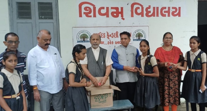 આ અવસરે શ્રી ઈન્દ્રજીતસિંહ ચાવડા અને શ્રી દીપકભાઈ અમીન દ્વારા તમામ વિદ્યાર્થીઓમાં પ્રેમપૂર્વક બિસ્કિટ વિતરણ કરવામાં આવ્યું, જે વિદ્યાર્થીઓ માટે પ્રોત્સાહન અને સંસ્કારનું પ્રતીક બની રહ્યું.