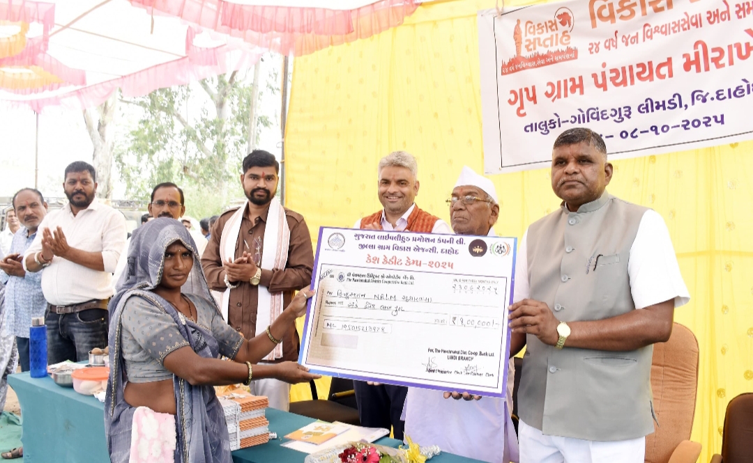 રાજ્ય સરકારની વિવિધ યોજનાના લાભાર્થીઓને સહાય કીટ વિતરણ કરવામાં આવી*માહિતી બ્યુરોઃ દાહોદ, તા. ૦૮ ઓક્ટોબર સેવા, સમર્પણ અને સુશાસનના ૨૪ વર્ષની ગૌરવપૂર્ણ વિકાસ યાત્રાની તા. ૭ થી ૧૫ ઓક્ટોબર સુધી રાજ્ય ભરમાં વિકાસ સપ્તાહ તરીકે ઉજવણી થઈ રહી છે. ત્યારે દાહોદ જિલ્લામાં ગોવિંદ ગુરુ – લીમડી તાલુકાના મીરાખેડી ખાતે આવી પહોંચેલા વિકાસ રથના વધામણાં કરવામાં આવ્યા હતા.ગોવિંદ ગુરુ- લીમડી તાલુકાના મીરાખેડી ગામે ધારાસભ્યશ્રી મહેશભાઈ ભુરીયા તથા મહાનુભાવોએ રથને આવકાર્યો હતો. ગામમાં આવેલા મીરાખેડી આઉટ પોસ્ટ ખાતે વિકાસ સપ્તાહની ઉજવણી પ્રસંગે લાભાર્થીઓને સહાય આપવાનો કાર્યક્રમ યોજાયો હતો. જેમાં આંગણવાડી દ્વારા બાળક અને કિશોરીઓને પોષણ કીટ આપવામાં આવી હતી, સખી મંડળની ૪ ગૃપની બહેનોને રૂપીયા એક લાખના ચેક આપવામાં આવ્યા હતા. કાર્યક્રમ દરમિયાન ૨૪ વર્ષના વિકાસ કાર્યોની વિકાસ ગાથાની શોર્ટ ફિલ્મ રજૂ કરવામાં આવી હતી જેને સૌએ નિહાળી હતી.ઝાલોદ ધારાસભ્યશ્રી મહેશભાઈ ભુરીયાએ આ પ્રસંગે કહ્યું હતું કે, ગુજરાત રાજ્ય સરકારશ્રીના મુખ્યમંત્રીશ્રી ભુપેન્દ્રભાઈ પટેલના અધ્યક્ષ સ્થાને અને સરકારશ્રીના મંત્રીમંડળના સહયોગથી વિકાસ સપ્તાહ રથનું પ્રસ્થાન કરાવી રાજ્યના અંતરિયાળ વિસ્તાર અને છેવડાના માનવી સુધી રાજ્ય સરકારે અને કેન્દ્ર સરકારની યોજનાઓની માહિતીનો પ્રચાર પ્રસાર થાય તે માટે ગામડે ગામડે વિકાસ સપ્તાહ અંતર્ગત કાર્યક્રમમાં કરવામાં આવી રહ્યા છે. દેશની શાંતિ સલામતી અને સુરક્ષા સાથે દેશના વિવિધ ક્ષેત્રોમાં વિકાસલક્ષી કાર્યની કમાન સંભાળી ૨૦૪૭ સુધીમાં વિકસિત ભારત બનાવી દેશને મહાસત્તા તરફ લઈ જવા માટે મોદી સાહેબના નેતૃત્વમાં દેશ આગળ વધી રહ્યો છે.તાલુકા વિકાસ અધિકારીશ્રી કલ્પેશ ગઢવીએ વિકાસના કાર્યોની માહિતી આપતા જણાવ્યું હતું કે રાજ્ય સરકારની અને કેન્દ્ર સરકારની જન કલ્યાણકારી યોજનાઓનો પ્રચાર પ્રસાર થાય અને જેને જરૂરિયાત હોય અને તેની પાત્રતા ધરાવતા હોય તેવા લાભાર્થીઓ સરકારશ્રી યોજનાઓનો લાભ મળે તે માટે વિકાસ સપ્તાહ અંતર્ગત વિવિધ યોજનાઓનો પ્રચાર પ્રસાર કરવામાં આવી રહ્યો છે હું જાહેર જનતાને વિનંતી કરું છું કે સરકારની યોજનાઓનો લાભ મેળવે.આ કાર્યક્રમમાં જિલ્લા સભ્યશ્રી ક્રિષ્નારાજ ભુરીયા, જિલ્લા હિસાબી અઘિકારીશ્રી કાપડીયા, વિસ્તરણ અધિકારીશ્રી પંચાયત કે .જી નાયક, PSI શ્રી મીરાખેડી, જિલ્લા પંચાયત અને તાલુકા પંચાયતના સભ્યશ્રીઓ , તાલુકા પંચાયતના પ્રમુખશ્રી, સરપંચશ્રીઓ ગામના આગેવાનો વડીલો, ICDSની બહેનો, સહિત ગ્રામજનો ઉપસ્થિત રહ્યા હતા.