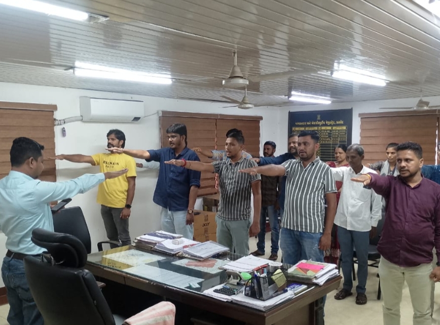 ઝાલોદ લોખંડી પુરુષ સરદાર વલ્લભભાઈ પટેલની જન્મજયંતિ નિમિત્તે દેશભરમાં વિવિધ પ્રકારના કાર્યક્રમોનું આયોજન કરવામાં આવે છે. કેન્દ્ર સરકાર દ્રારા તા.૩૧ ઓકટોબરને સરદાર વલ્લભભાઈ પટેલના જન્મદિવસને “રાષ્ટ્રીય એકતા દિવસ” તરીકે ઉજવવામાં આવે છે. જેના ભાગરૂપે દાહોદ જિલ્લાના ઝાલોદ મામલતદાર કચેરી ખાતે નાયબ મામલતદારશ્રી તેજસ અમલીયાર સહિત કર્મયોગીઓએ રાષ્ટ્રની એકતા, અખંડિતતા અને સુરક્ષા જાળવવા તથા દેશમાં એકતાની ભાવના વધુ મજબૂત બને તેવા સંકલ્પ સાથે એકતા શપથ ગ્રહણ કર્યા હતા. આ દરમિયાન કચેરીની તમામ કર્મયોગીઓ ઉપસ્થિત રહ્યા હતા.