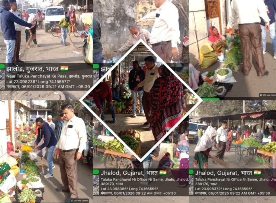 ઝાલોદ નગરપાલિકા દ્વારા “સ્વચ્છતા અભિયાન” અંતર્ગત આજ રોજ તા.૦૬/૦૧/૨૦૨૬ (મંગળવાર)ના રોજ શહેરમાં વ્યાપક સ્વચ્છતા કામગીરી હાથ ધરવામાં આવી. માનનીય મુખ્ય અધિકારી શ્રી યોગેશ જે. ગણાત્રાની સૂચના અનુસાર નગરપાલિકાની ટીમ દ્વારા સિંગલ યુઝ પ્લાસ્ટિકનો ઉપયોગ કરતા વેપારીઓ તથા નાગરિકો સામે દંડાત્મક કાર્યવાહી કરવામાં આવી.આ અભિયાન દરમ્યાન ઝાલોદના રહેણાંક વિસ્તારો ઉપરાંત બાંસવાડા રોડ સબ્જી માર્કેટ તેમજ કોમર્શિયલ વિસ્તારોમાં વિશેષ સફાઈ અભિયાન ચલાવવામાં આવ્યું. ગંદકી દૂર કરી શહેરને સ્વચ્છ અને સુંદર બનાવવાના ઉદ્દેશ સાથે નગરપાલિકાના કર્મચારીઓએ સઘન સફાઈ કામગીરી કરી હતી.
