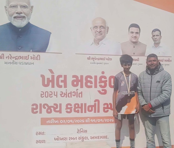 ગુજરાત સરકારના રમત ગમત, યુવા અને સાંસ્કૃતિક પ્રવૃત્તિઓ વિભાગ, સ્પોર્ટ્સ ઓથોરિટી ઓફ ગુજરાત અને વડોદરા જિલ્લા વહીવટીતંત્રના સંયુક્ત ઉપક્રમે ખેલ મહાકુંભ-૨૦૨૫ અંતર્ગત અમદાવાદ ખાતે યોજાયેલ ૧૪ માં ખેલ મહાકુંભમાં વડોદરાના કાવ્ય સક્સેનાએ લોન ટેનિસ માં બ્રોન્ઝ મેડલ મેળવી વડોદરા જિલ્લાને ગૌરવ અપાયું છે.