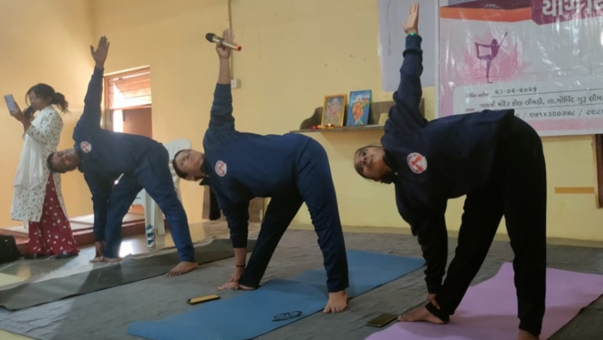 ગુજરાત રાજ્ય યોગ બોર્ડ નાં ખુબ જ ઉર્જાવાન પ્રેરણા સ્ત્રોત આદરણીય યોગ સેવક શીશપાલજીના માર્ગદર્શન હેઠળ ઝોન -3 નાં ખુબ જ ઉત્સાહિત આદરણીય ઝોન કોઓર્ડીનેટર પિન્કીબેન ની સલાહ મુજબ દાહોદ જિલ્લાના ગોવિંદ ગુરુ લીમડી તાલુકામાં ગાયત્રી મંદિર હોલ ખાતે તાલુકા યોગ શિબિર નું આયોજન કરવામાં આવ્યું જે સંદર્ભે ગુજરાત રાજ્ય યોગ બોર્ડ દ્વારા સ્વસ્થ ગુજરાત મેદસ્વિતા મુક્ત ગુજરાત દરેક તાલુકામાં ગામડે ગામડે યોગ ટ્રેનર તૈયાર થાય અને ઘર ઘર સુધી યોગ પહોંચે અને લોકો સ્વસ્થ અને નિરોગી રહે તે માટે યોગ શિબિરનું આયોજન કરવામાં આવેલ હતું જેમાં 280 ની સંખ્યામાં લીમડી તાલુકાના ગ્રામ્ય વિસ્તારમાંથી ભાઈઓ બહેનોએ ભાગ લીધો હતો જેમાં 63 ભાઈ બહેનો યોગ ટ્રેનર બનવા માટે ફોર્મ ભર્યા અને યોગ ટ્રેનિંગ લેવા માટે તૈયાર થયા હતા જેનો હેતુ સમગ્ર ગોવિંદ ગુરુ લીમડી તાલુકામાં યોગ નું વાતાવરણ બને તેવો છે આ કાર્યક્રમમાં મુખ્ય મહેમાન આદરણીય ગ્રામ પંચાયત નાં સરપંચ શ્રી શીલાબેન મોરી, સભ્ય શ્રી કુલદિપભાઇ મોરી, મુકિતરંજન સરકારી આયુર્વેદ હોસ્પિટલ લીમડી નાં ડૉ.શ્રી બામણ સાહેબ શ્રી, સંજેલી તાલુકાના THO સિંઘ સાહેબ શ્રી, ગાયત્રી મંદિર નાં મહારાજ શ્રી મગનભાઈ તેમજ ગુજરાત રાજ્ય યોગ બોર્ડના આદરણીય ઝોન કોઓર્ડીનેટર શ્રી પિન્કીબેન જિલ્લા કોર્ડીએન્ટર શ્રી ધુળાભાઈ પારગી , રાહુલભાઇ પરમાર, તાલુકા યોગ કોચ કલ્પનાબેન ભાભોર, પુષ્પાબેન બામણીયા, ઝાલોદ તાલુકા યોગ કોચ વિનોદભાઇ ભાભોર,અને મોટી સંખ્યામાં યોગ ટ્રેનર ભાઇ બહેનો અને ગામડામાંથી યોગ સાધક ભાઈ-બહેનો ઉપસ્થિત રહ્યા હતા .આ યોગ શિબિર મા યોગ ટ્રેનર તાલિમ પૂર્ણ કરી પાસ થયેલ યોગ ટ્રેનર ભાઇ બહેનો ને મુખ્ય મહેમાન નાં હસ્તે પ્રમાણપત્ર વિતરણ કરવામાં આવ્યાં હતાં.